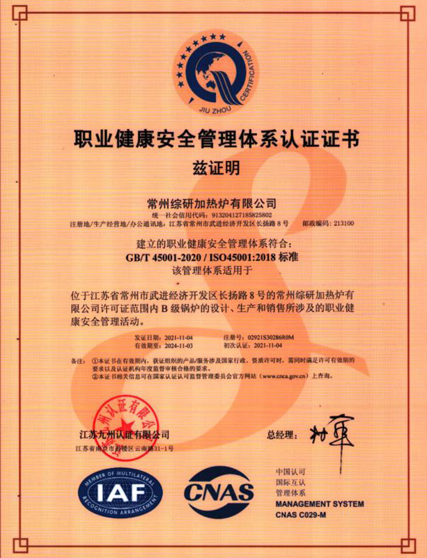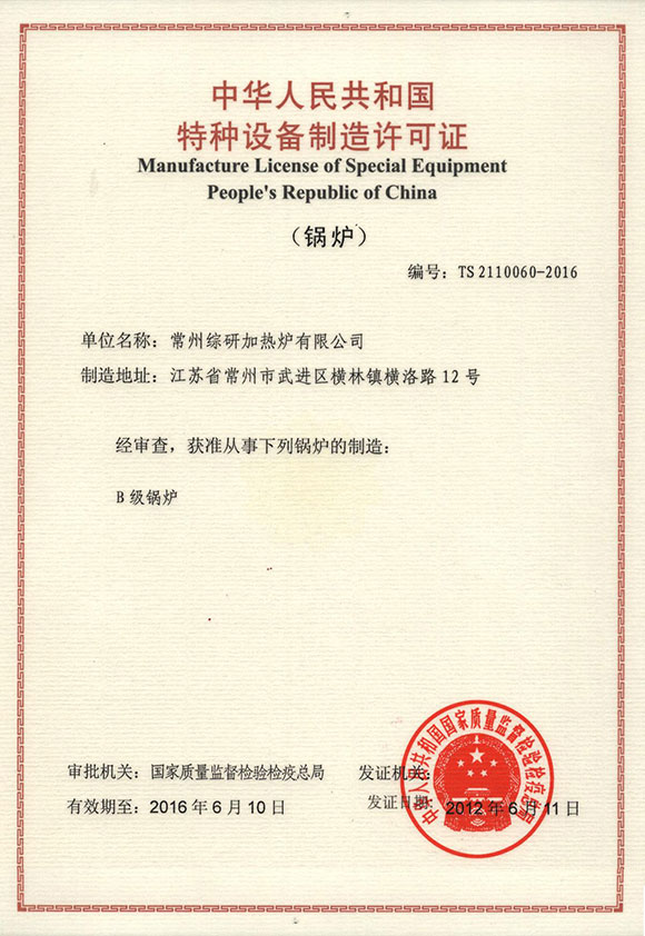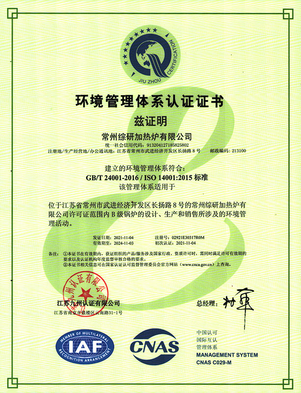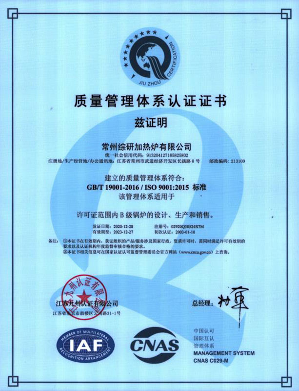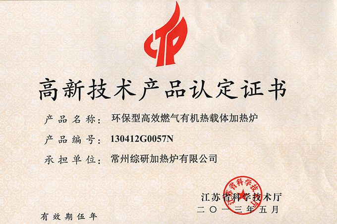 環(huán)保型高效燃?xì)庥袡C(jī)熱載體加熱爐-認(rèn)證證書