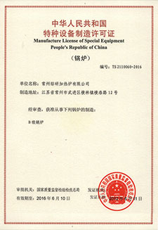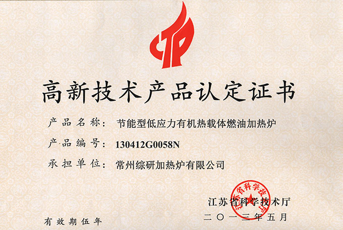 節(jié)能型低應(yīng)力有機(jī)熱載體燃油加熱爐-認(rèn)證證書