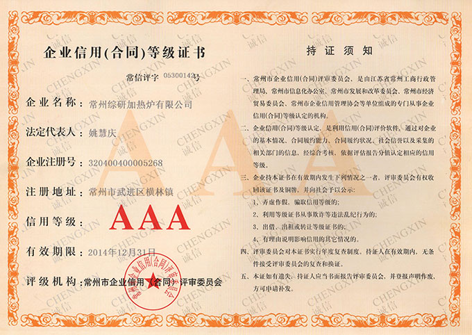 企業(yè)信用(合同)等級(jí)證書