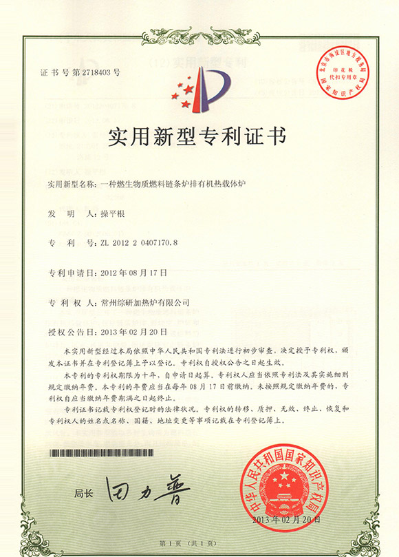 一種生物質(zhì)燃料鏈條爐排有機熱載體爐