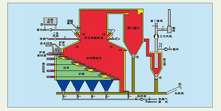 生物質(zhì)燃料熱能工廠系統(tǒng)圖 常州綜研加熱爐有限公司自行設(shè)計制造國內(nèi)領(lǐng)先水平的全自動運行的大型熱能工廠,率先在安慶華林人造板有限公司投產(chǎn)成功,開創(chuàng)了大型熱能工廠國產(chǎn)化的先例,填補了國內(nèi)空白。 木材工業(yè)加工中產(chǎn)生的大量樹皮、廢木料、木屑等廢料在腐爛后對環(huán)境產(chǎn)生了嚴(yán)重污染,現(xiàn)在把這些有熱值的污染物,通過熱能工廠焚燒產(chǎn)生木材加工中需要的蒸汽,高溫導(dǎo)熱油及干燥工藝用的熱風(fēng)等多種熱源。生產(chǎn)風(fēng)冷卻往復(fù)爐排式熱能工廠的國產(chǎn)化,大大降低了用戶項目投資,2003 年該項目獲得了江蘇省高新技術(shù)產(chǎn)品證書,并得到了國務(wù)院有關(guān)部委的重視。至今已承接完成了熱能工廠工程20 多個。北京克諾森華用于進口板機線5000 萬大卡/ 小時熱能工廠已安全高效運行了多年。 歡迎用戶來我公司索取資料或參觀指導(dǎo)。